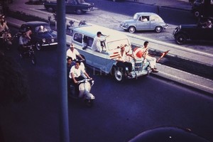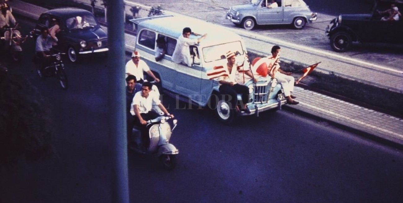 Gentileza Familia Amicone Caravana tatengue Autos, motos, bicicletas...todo estaba permitido a la hora de festejar el primer y recordado ascenso de Unión a la Primera División del fútbol argentino ese 26 de noviembre de 1966. La zona de Boulevard prácticamente tomada por los hinchas y socios del Tate. Además del equipo, la gente ovacionó ese día a don Marcelo Casabianca.