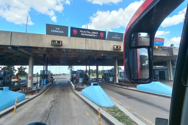 La euforia que vivieron los hinchas y jugadores del “Patrón” en Mendoza se trasladó a las afueras del Túnel Subfluvial y un cartel en la puerta de entrada a Paraná reza la leyenda “Felicitaciones Patronato”.