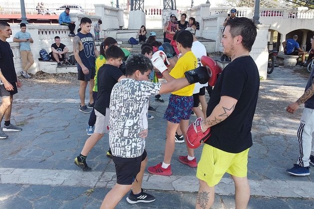 El pasado fin de semana, más precisamente en la siesta del sábado, unos 15 chicos que no superaron los 13 años, acudieron a la Costanera Oeste, a metros del puente Colgante, para experimentar nociones básicas sobre el boxeo.
