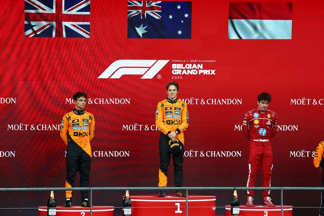 La jornada en Spa-Francorchamps comenzó con complicaciones. Una intensa lluvia obligó a postergar la largada por más de una hora y, tras varias vueltas detrás del auto de seguridad, la carrera se relanzó en condiciones de pista mojada. Piastri no esperó: le arrebató la punta a Norris en la primera oportunidad y manejó el ritmo del GP hasta el final.