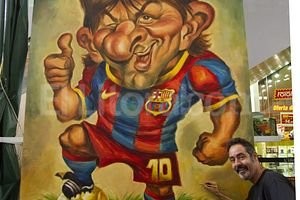 (EFE). Lío Messi es un personaje de alcance mundial y que recibe un sinfín de homenajes, el último de ellos es un caricatura de tres metros de alto por dos de ancho realizada en Barcelona por el artista Joan Vizcarra, la más grande que jamás se pintó sobre el astro argentino.