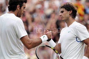 Nadal, número uno del mundo, se impuso a Del Potro 7-6 (8-6), 3-6, 7-6 (7-4) y 6-4 tras tres horas y 52 minutos de batalla. Su rival el miércoles será el veterano estadounidense Mardy Fish, vencedor hoy del checo Tomas Berdych, finalista de 2010, por 7-6 (7-5), 6-4 y 6-4.