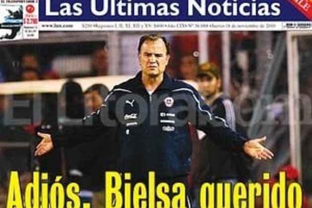 El diario "Las Últimas Noticias" dedicó toda su portada de hoy al entrenador argentino Marcelo Bielsa, quien ayer dirigió su último encuentro como técnico de la selección chilena de fútbol, según informa la agencia Telam.