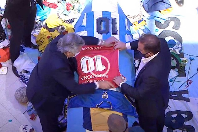 En el recinto donde está el ataúd, Fernández mostró sus respetos para con Maradona y su familia. Estuvo unos minutos y le dejó una camiseta de Argentinos Jrs y un pañuelo de Abuelas de Plaza de Mayo.