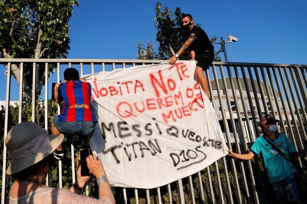 La protesta de los hinchas azulgranas: que se quede Messi, que se vaya Bartomeu