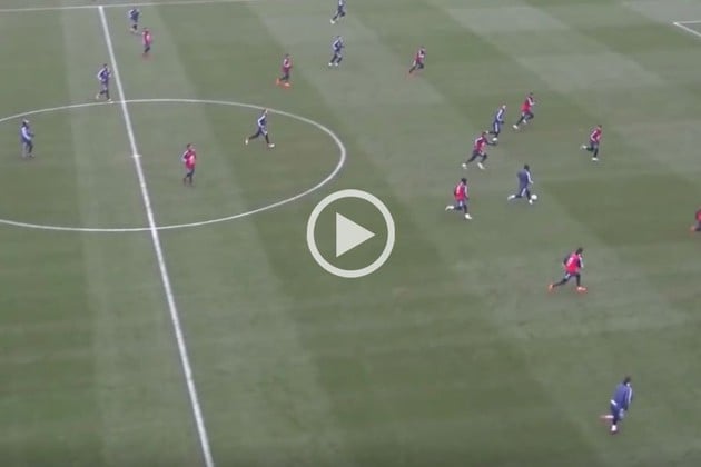 En el entrenamiento de este miércoles por la tarde, Lionel Messi hizo un golazo. El delantero del Barcelona comenzó la jugada en mitad de cancha y, a pesar de que lo rodeaban 5 jugadores, logró anotar desde afuera del área.
