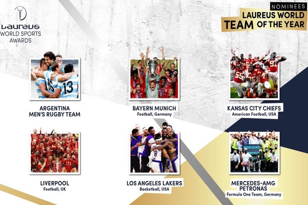 En ese rubro, los Springboks se quedaron con ese premio el año pasado y los nominados para este año, además de Los Pumas y el Bayern Munich (fútbol), fueron Kansas City Chiefs (Fútbol Americano), el Liverpool (Fútbol), Los Ángeles Lakers (baloncesto) y Mercedes Petronas (Fórmula Uno).