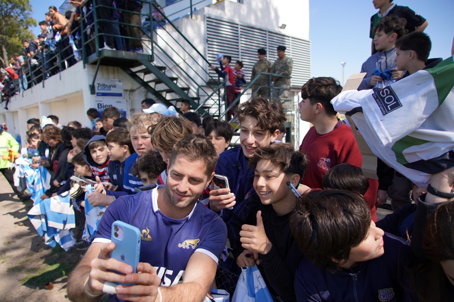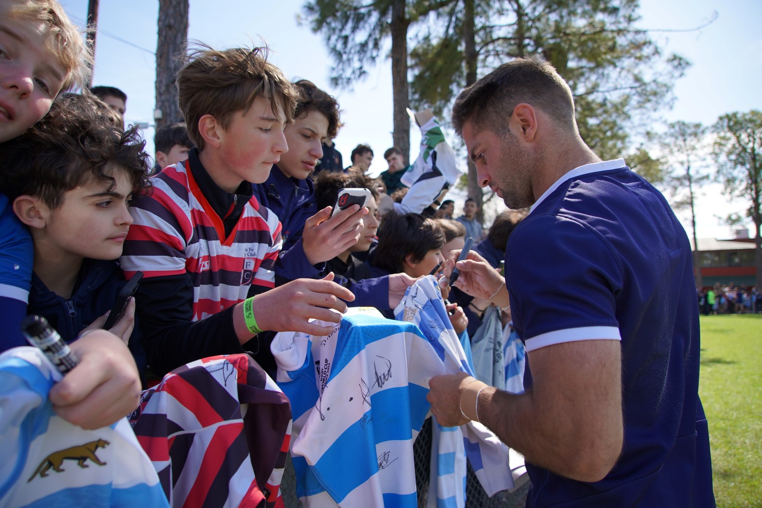5 / 7 Los Pumas se sacaron fotos y firmaron autógrafos en el entrenamiento de este miércoles en Santa Fe. Foto: Fernando Nicola
