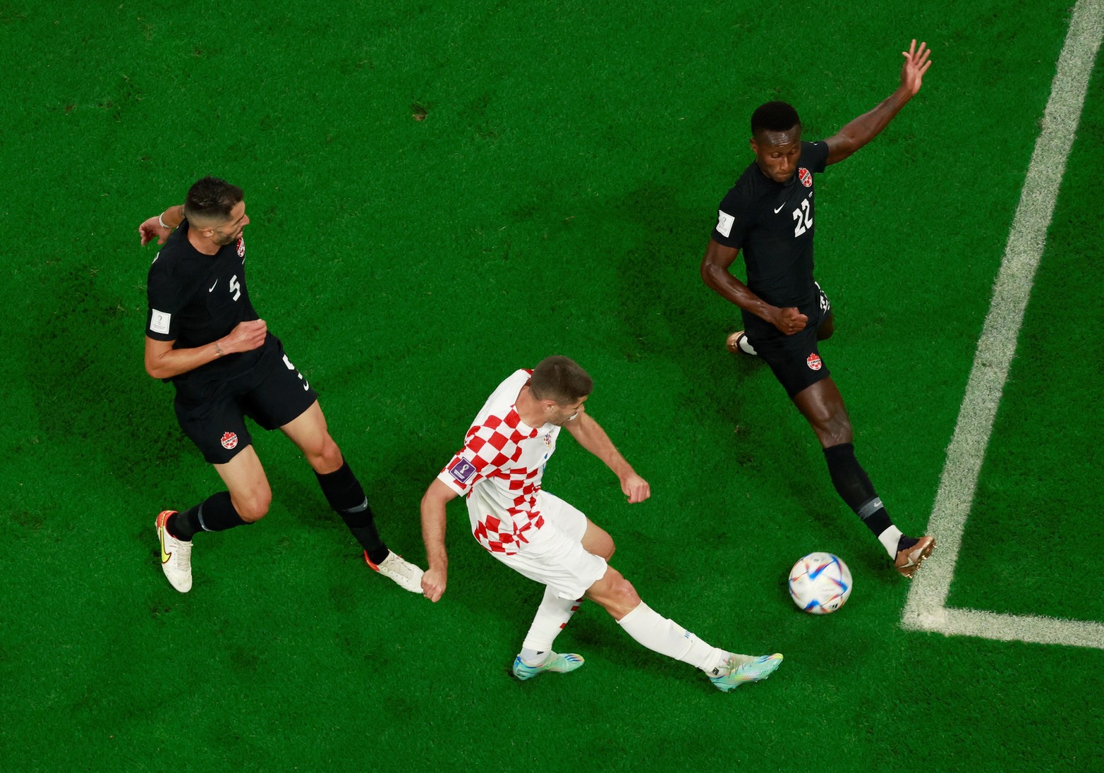 9 / 18 En el Grupo F, Croacia goleó 4 a 1 a Canadá y aumentó sus chances de clasificar a octavos de final. Foto: CARL RECINE