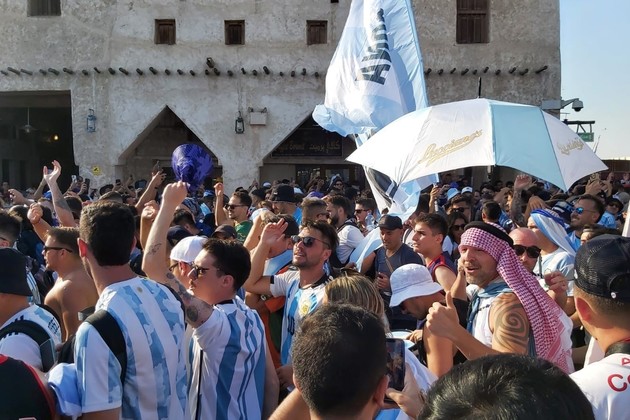 La tradicional avenida Corniche y el centenario mercado qatarí fueron los lugares elegidos por los argentinos para renovar la tradición de todos los mundiales.