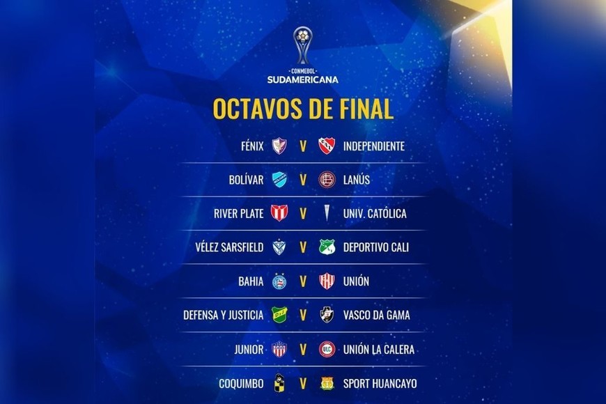 Por otra parte, Independiente enfrentará a Fenix (Uruguay), Vélez a Deportivo Cali (Colombia), Lanús a Bolivar (Bolivia) y Defensa y Justicia a Vasco da Gama (Brasil).