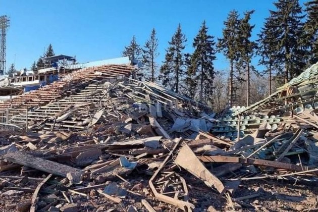 El estadio del club de la Premier League de Ucrania, "Yuri Gagarin", construido en 1936, fue bombardeado por las fuerzas rusas y quedó totalmente destruido.