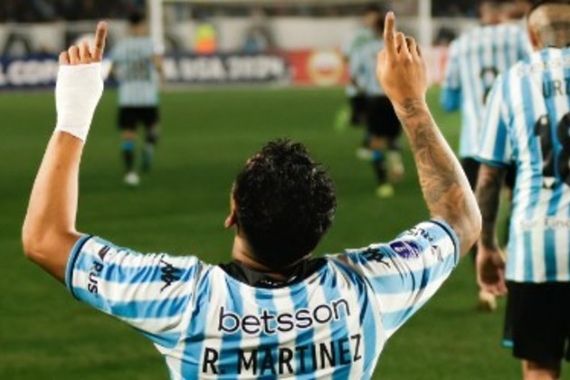 En apenas 10 minutos, Baltasar Rodríguez centró la pelota desde un tiro de esquina y el goleador "Maravilla" Martínez con la cabeza puso el 1 a 0 para Racing, que dominaba el partido desde el inicio y con la presión alta ante los errores del rival.
