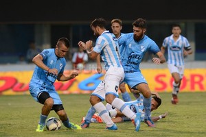 Un cabezazo al palo de Leonardo Di Lorenzo a los 10 minutos y un remate de Gonzalo Ríos, casi un penal en movimiento, fueron las advertencias del Celeste, que capitalizó a los 21 una desinteligencia en la última línea con un pelotazo largo a espaldas de los centrales y una excelente definición de Figueroa, tras anticipar a Germán Montoya.