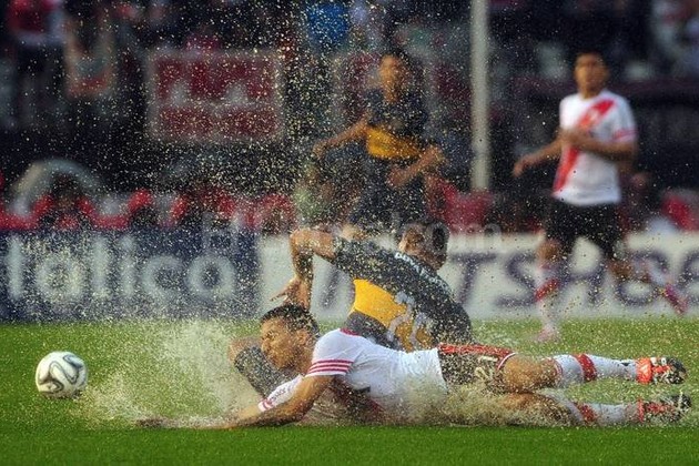 River Plate, líder invicto de la clasificación, y Boca Juniors empataron 1-1 en el estadio Monumental, en un superclásico por la 10ma. fecha del torneo de Primera División que estuvo pasado por agua, a raíz de una intensa lluvia que se abatió sobre Núñez