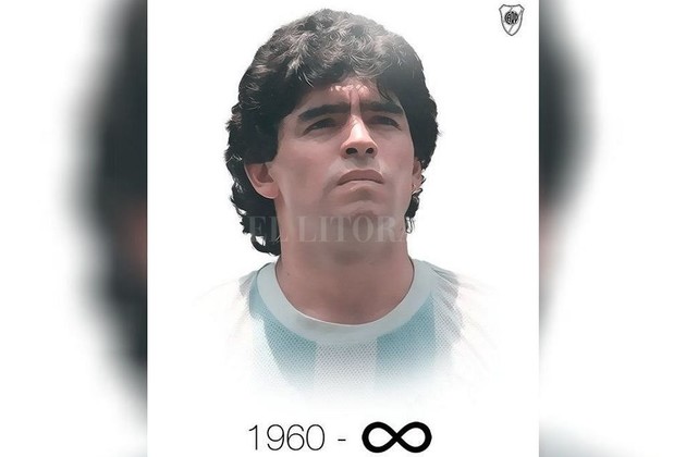 El Club Atlético River Plate despidió desde sus redes oficiales a Diego Armando Maradona con una foto del astro con la camiseta de la Selección Nacional de 1986 y una leyenda que dice “Hasta siempre, Diego”.