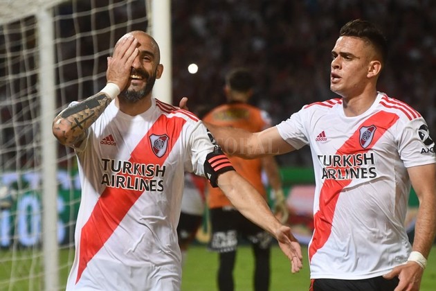 Javier Pinola cuando terminaba la etapa inicial anotó el primer gol de elenco "millonario", que rompió la racha negativa ante este rival y accedió al choque decisivo frente a Central Córdoba de Santiago del Estero, que mas temprano venció por 1 a 0 a Lanús en La Rioja.