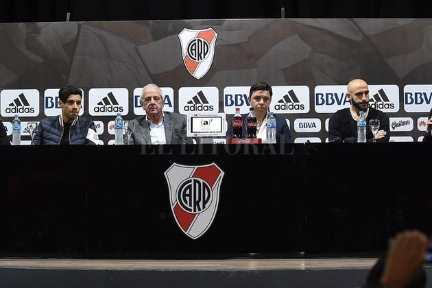 ‘Hace un tiempo que veníamos negociando. Son todos grandes jugadores y hay otra cualidad que River mira y mucho, son excelentes personas, cunado se ponen el escudo de River hay que tener valores‘, resaltó el presidente Rodolfo D’Onofrio en conferencia de prensa.