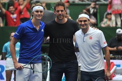 "Les quería contar que lamentablemente no voy a jugar el partido con Federer. A pesar de haber estado entrenando fuerte durante estos últimos días, me di cuenta que la rodilla no está a nivel para jugar ante el mejor de la historia", confesó el campeón del US Open 2009. Pese a no poder disputar el encuentro, “la torre de Tandil” estuvo presente y fue ovacionado cuando apareció para realizar el sorteo en el centro del court.