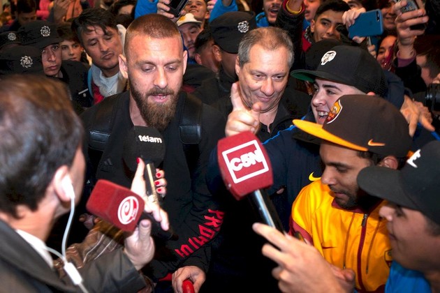 El experimentado mediocampista italiano Daniele De Rossi arribó este jueves a la Argentina para sumarse como refuerzo a Boca, cuyos hinchas le dieron una ferviente bienvenida en medio de pedidos para que ayude a conquistar la séptima Copa Libertadores.