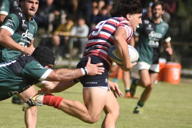 Eso motivó, hasta llegar a la primera conquista para SFRC. Intento de rechazo del 10 de Tucumán Rugby, gran “tapa” de Tomás Derito, la pelota que sale disparada al ingoal “verdinegro” y en la carrera, el pilar izquierdo, se terminó imponiendo para apoyar el primer try de su equipo.