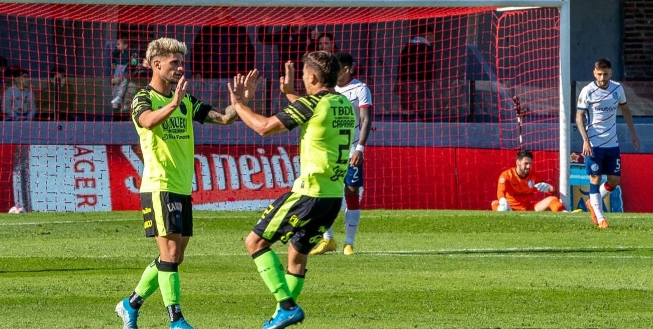 El festejo del gol de Barracas Central ante San Lorenzo convertido por Alexis Domínguez. Crédito: Prensa Barracas