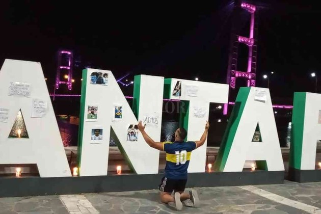 Tenés que leerMiles de fanáticos le dan el último adiós a Diego MaradonaEn la ciudad de Santa Fe también se armó un espacio para recordar al ídolo futbolero. En un lugar bien representativo de la capital provincial. A metros del Puente Colgante y sobre la Laguna Setúbal, donde “Santa Fe” está escrito con letras corpóreas, algunos fanáticos de Diego dejaron sus huellas.