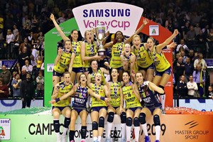 No obstante, el título de la deportista local llamó particularmente la atención de las redes sociales y los medios. Resulta que la atletas prefirieron, además de recurrir a los tradicionales rituales, festejar haciendo fotos nudistas tapándose con el trofeo de la máxima categoría del voley de Italia.