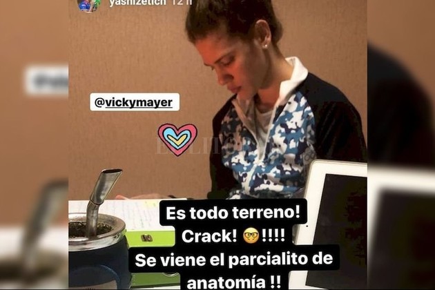 Luego del partido, la armadora surgida en Regatas y la capitana Yamila Nizetich se hicieron un tiempo para estudiar por la noche.