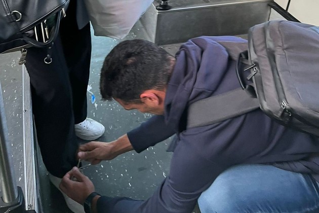 El momento fue captado por un usuario de Twitter (@cappa_pato), que viajaba con otras personas en uno de los autobuses que trasladan pasajeros a los aviones de pista cuando están lejos de las puertas. Y fue testigo de una situación que compartió en su cuenta con una foto y tuvo como protagonista al DT campeón del mundo.