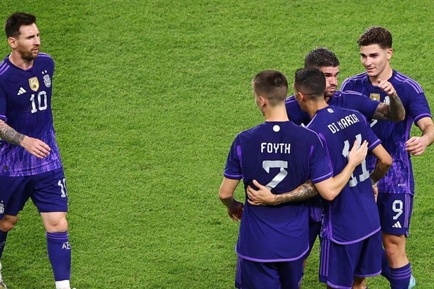 Selección Argentina: Emiliano Martínez; Juan Foyth, Nicolás Otamendi, Lisandro Martínez, Marcos Acuña; Rodrigo De Paul, Leandro Paredes, Alexis MacAllister; Lionel Messi, Julián Álvarez y Ángel Di María. DT:Lionel Scaloni.