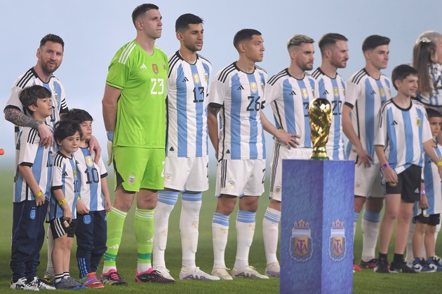 El himno fue interpretado por el cantante cordobés Ariel Ardit, quien también había tenido la misma posibilidad en un Argentina- Perú en octubre de 2021, luego de la obtención de la Copa América de Brasil.