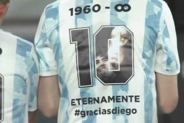 Este homenaje, en teoría, iba a ser en marzo. Pero la suspensión de la doble fecha de ese mes, postergó el reconocimiento hasta junio. La primera Selección de fútbol que homenajeó a Maradona fue la Sub 23, que salió a la cancha con una camiseta con el "10" y la frase "ETERNAMENTE #GraciasDiego". Además, dicha camiseta lucía el número 1960 y el símbolo del infinito (∞).