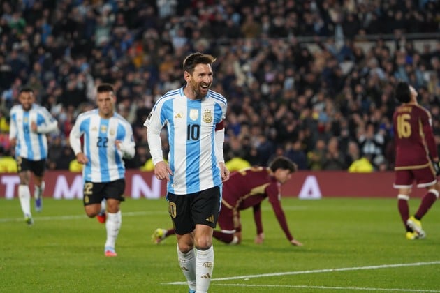 Lionel Messi festejando en el partido ante Venezuela de este año, el último de Messi (oficial) en Argentina con la camiseta de la selección. Foto: Fernando Nicola
