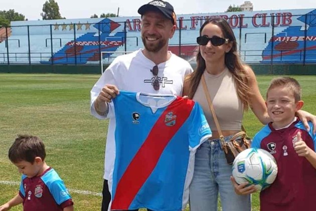 El extremo de la Albiceleste pasó por el Estadio Julio Huberto Grondona de Sarandí, lugar donde debutó en el fútbol argentino. Posó con su familia y una camiseta del Viaducto dentro del campo de juego.