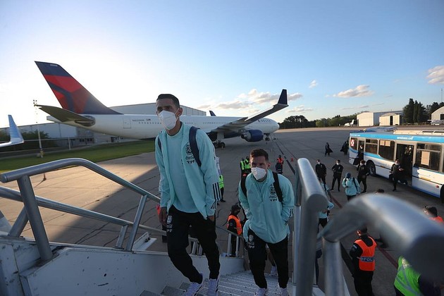 El seleccionado argentino llegó a Asunción para enfrentar este jueves a Paraguay