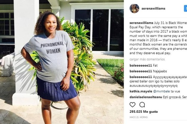 Serena Williams defendió la igualdad salarial para las mujeres negras en Estados Unidos: "Las mujeres negras son la piedra angular de nuestras comunidades, son estupendas y se merecen el mismo salario", escribió la estrella del tenis en su cuenta de Instagram junto a una foto suya.