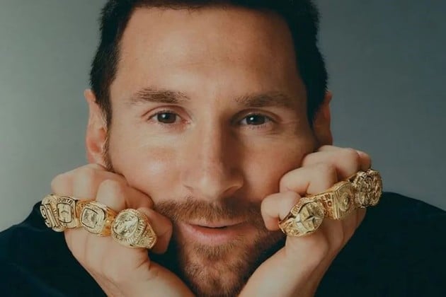 Lionel Messi volvió a consagrarse como el gran ganador del Balón de Oro y la marca que lo viste (Adidas) decidió hacerle un homenaje especial, con un guiño a la NBA. La firma le obsequió ocho anillos personalizados.