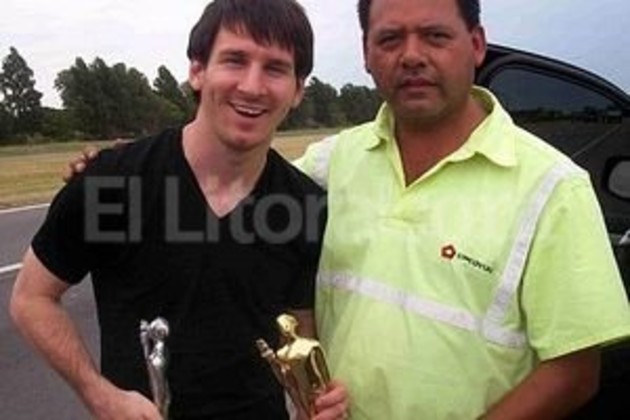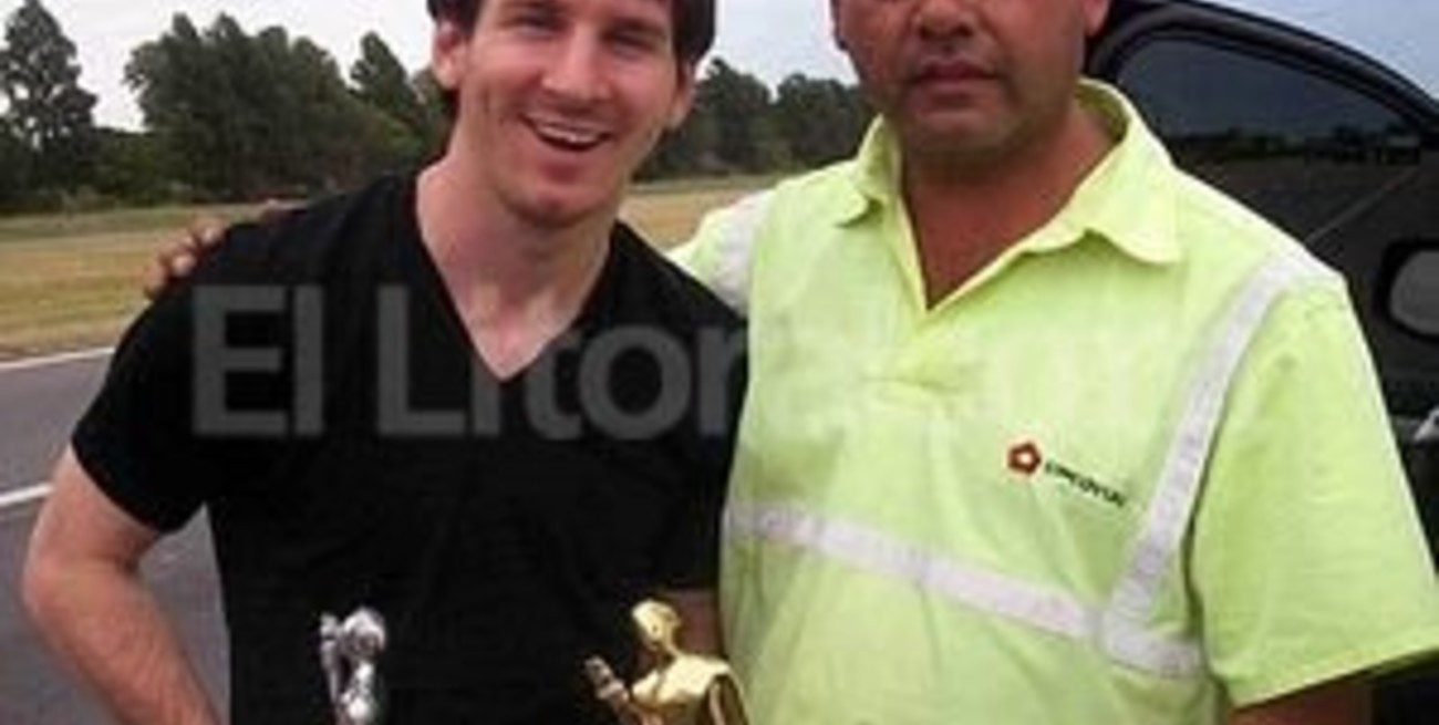 Las estrellas del Barcelona y la Selección Nacional sufrieron un desperfecto mecánico en la autopista Buenos Aires-Rosario, se lo tomaron con buena onda y humor, y hasta se sacaron fotos con quien les dio una mano para seguir camino.