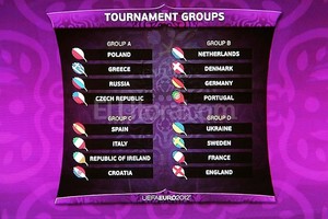 Holanda, Alemania, Dinamarca y Portugal, en el B, y sin duda el cuarteto más exigente, Polonia, Grecia, Rusia y República Checa, en el A; y Ucrania, Suecia, Francia e Inglaterra, en el D, completan la configuración de la primera fase de la Eurocopa, sorteada hoy en el Palacio de las Artes ’Ucrania’ de Kiev.