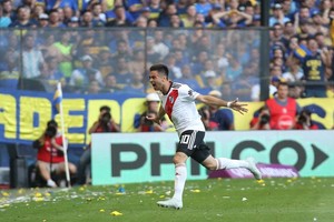 Precisamente, luego de ejercer presión alta en la salida "Xeneize", Mas intentó rechazar, la pelota pegó en Palacios y le quedó servida al 10 "millonario", que la empalmó de zurda para abrir el marcador.