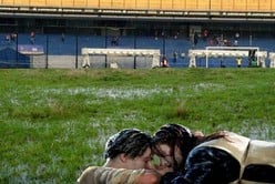 A las 15:30, el árbitro principal, el chileno Roberto Tobar, recorrió el campo de juego con sus colaboradores intentando hacer roda la pelota, que quedaba estancada en cada espejo de agua que se divisaba desde las alturas.