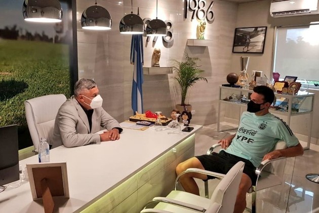 El titular de la AFA publicó en sus redes sociales una foto con el DT, que ayer arribó al país procedente de España, para tratar las últimas novedades sobre la realización de la próxima doble fecha de las Eliminatorias Sudamericanas para el Mundial de Qatar 2022.