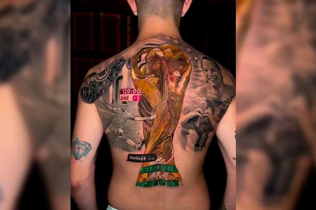Nicolás Pérez, utilero de la Selección Argentina, quiso inmortalizar el tercer título mundial del equipo de Lionel Scaloni con un tatuaje que ante los ojos de cualquier fanáticos es impresionante. La obra de arte ocupa casi la totalidad de su espalda y tiene varios detalles que conmemoran aquella final contra Francia.