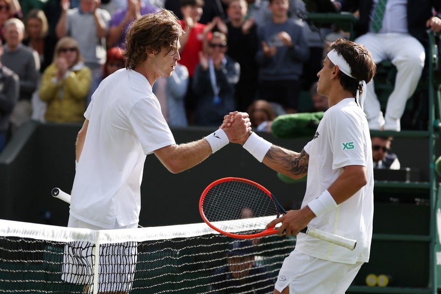 El tenista argentino y un batacazo en Wimbledon ante Rublev. Crédito: Reuters