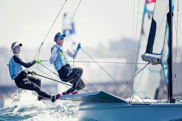 Travascio y Branz, que compiten juntas desde 2013, terminaron 6, 19 y 6 en las pruebas de hoy y quedaron cuartas, con 54 puntos, entre 21 tripulaciones, en tanto que las británicas Charlotte Dobson y Saskia Tidey lideran con 32 unidades.