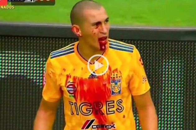 Después del golpe, el lateral izquierdo cayó al suelo y estuvo tendido algunos segundos. Cuando se levantó, su camiseta se había cubierto de sangre también. El jugador fue atendido fuera del campo y le colocaron una gasa en el labio.