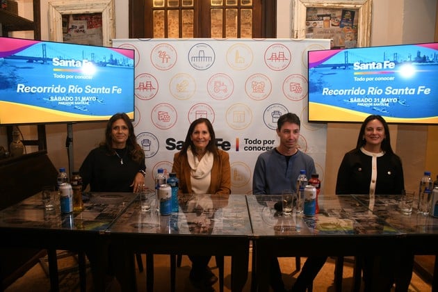 La Secretaria de Turismo de la provincia, Marcela Aeberhard, junto a los representantes de las escuelas de SUP de Santa Fe, Rosario y Paraná, brindaron en conferencia de prensa los detalles de lo que la ciudad vivirá este sábado: el desafío titulado “Recorrido Río Santa Fe” en SUP promete un colorido espectacular con más de 100 tablas y kayaks. En nombre de los clubes locales acompañaron y brindaron detalles: Nicandra Ostinelli, Susana Kieffer y Andrés Zóttico.
