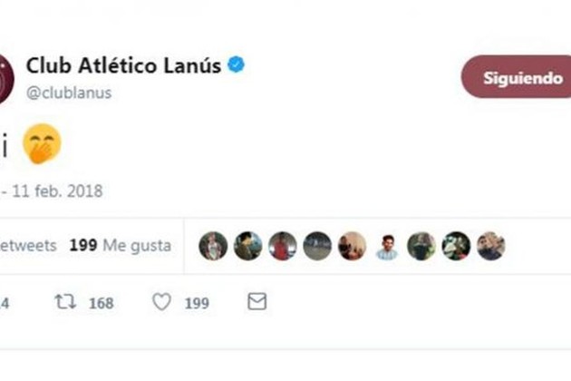 El tweet que publicó Lanús era la onomatopeya de una risa con el ícono de una cara riéndose. Tras unos minutos de estar publicado, el mensaje fue eliminado.