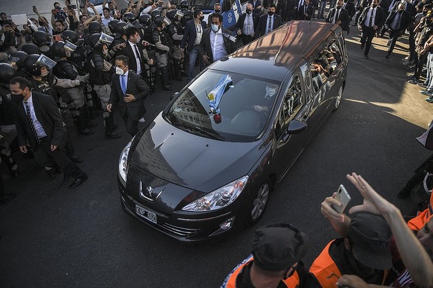 Foto:Alejandro Amdani/aa/TelamTélam Telam, Ciudad de Buenos Aires, 26 de noviembre de 2020: Se produce la salida del féretro que transporta los restos de Diego Armando Maradona de la Casa Rosada con destino final al cementerio en Bella Vista. Foto:Alejandro Amdani/aa/Telam